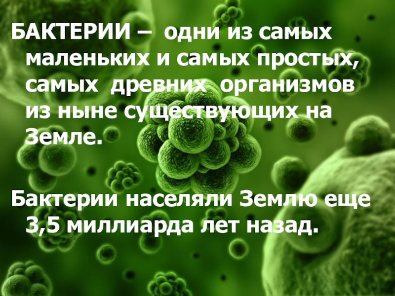 Слайд 5БАКТЕРИИ –  одни из самых маленьких и самых простых, самых  древних