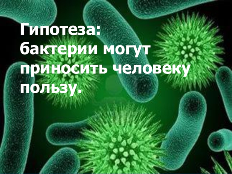 Слайд 4Гипотеза:   бактерии могут приносить человеку пользу.