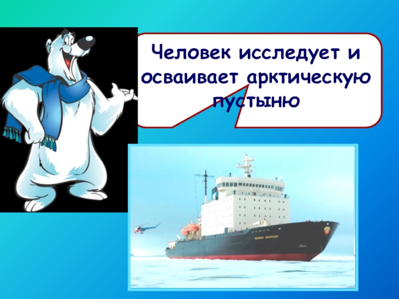 Слайд 94Человек исследует и осваивает арктическую пустыню