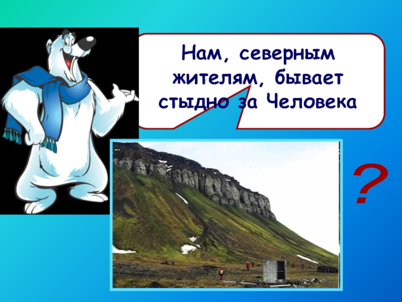 Слайд 97Нам, северным жителям, бывает стыдно за Человека