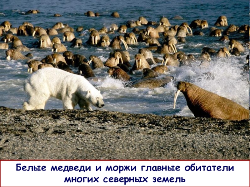 Слайд 68Белые медведи и моржи главные обитатели многих северных земель