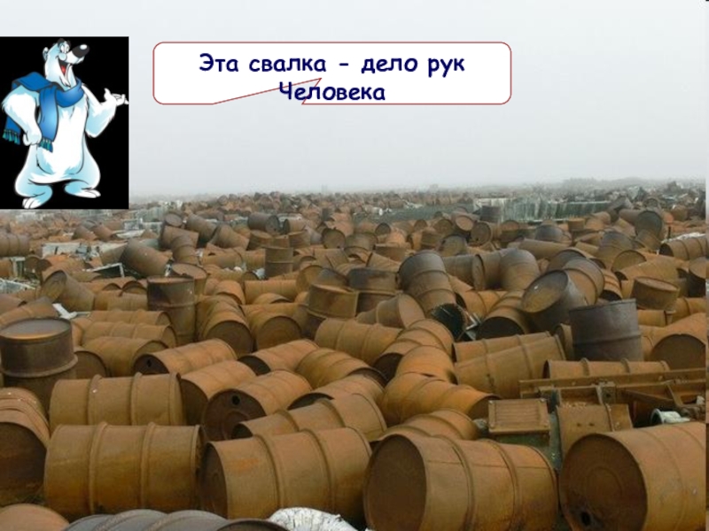 Слайд 101К сожалению , из-за освоения Арктики человеком здесь возникли экологические проблемы.