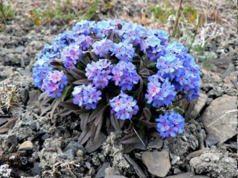 покров тает и обнажаются небольшие участки каменистой почвы. Скудная растительность оживает.