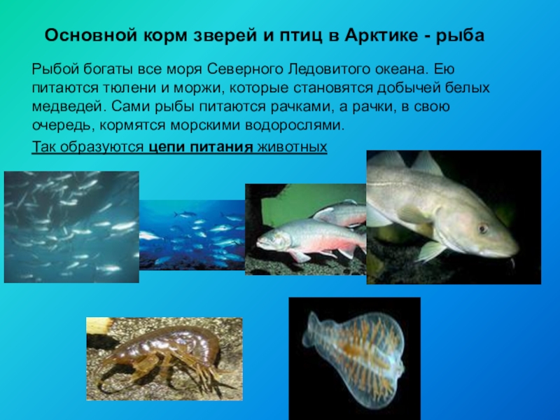 Слайд 71Основной корм зверей и птиц в Арктике - рыба