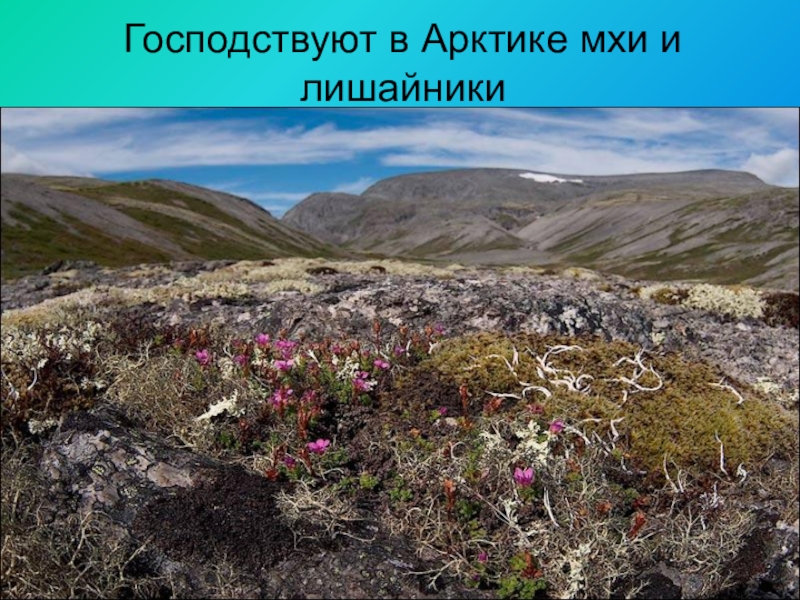 Слайд 36Господствуют в Арктике мхи и лишайники