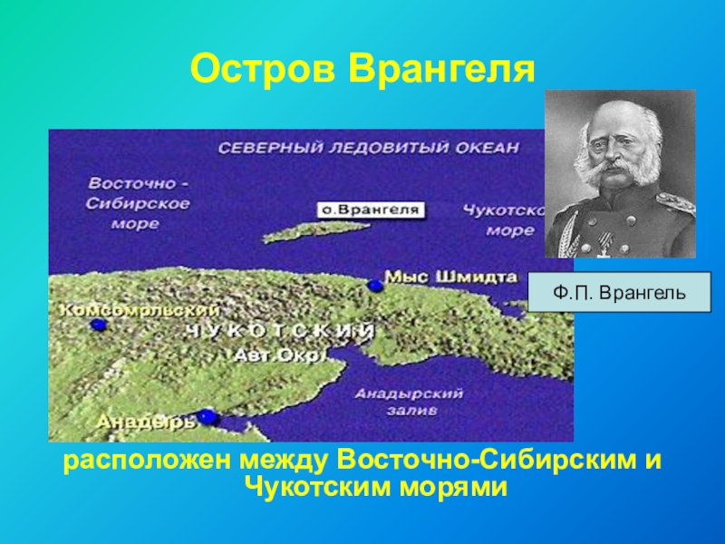 Слайд 85О́стров Вра́нгеля — российский остров в Северном Ледовитом океане между Восточно-Сибирским и
