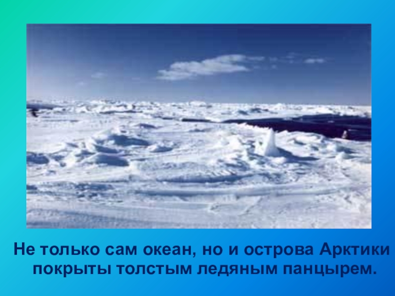 Слайд 11 Не только сам океан, но и острова Арктики покрыты толстым