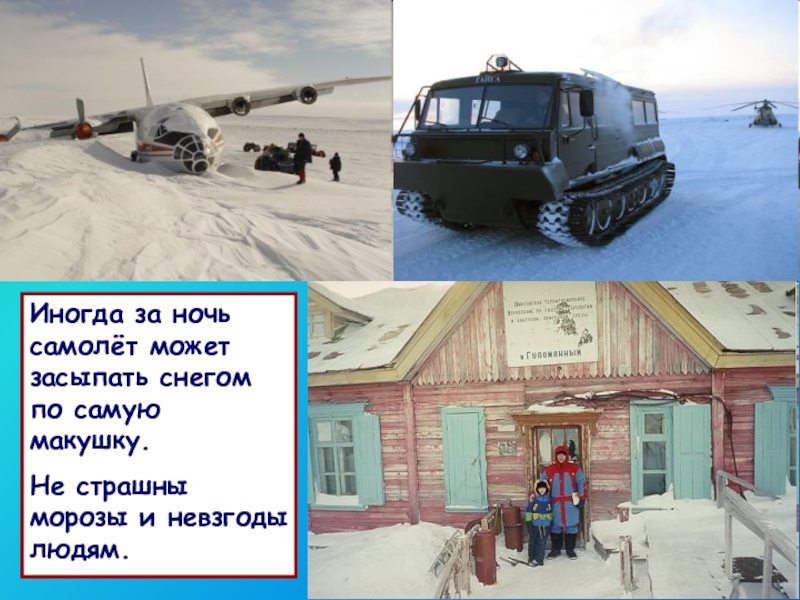 Слайд 95Иногда за ночь самолёт может засыпать снегом по самую макушку.