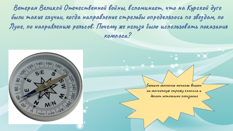 Большое скопление металла влияет на магнитную стрелку компаса и делает неточными показания