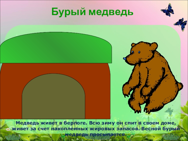 доме, живет за счет накопленных жировых запасов. Весной бурый медведь просыпается.