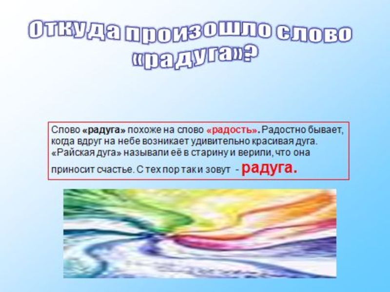 Слайд 1 ПОЧЕМУ РАДУГА РАЗНОЦВЕТНАЯ?
