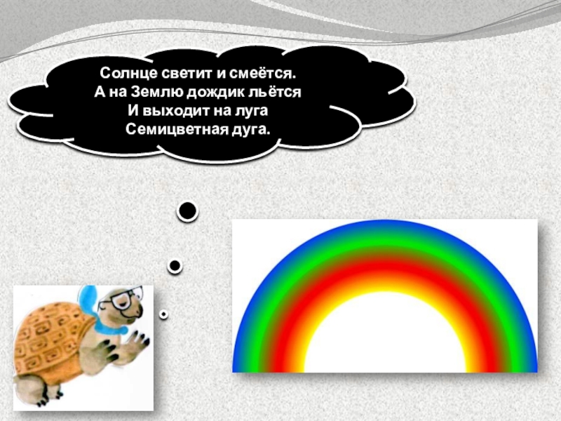 Солнце светит и смеётся.А на Землю дождик льётсяИ выходит на лугаСемицветная дуга.
