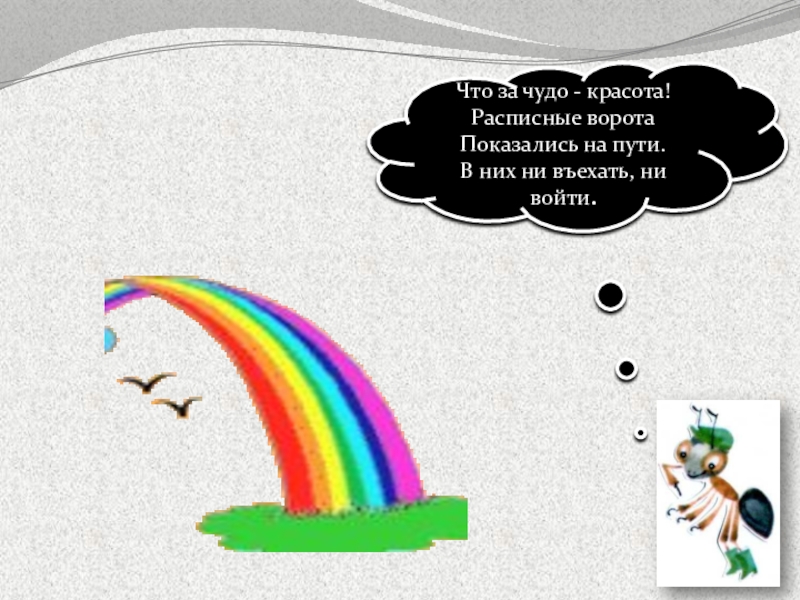 Слайд 2Что за чудо - красота! Расписные ворота Показались на пути. В них ни въехать,