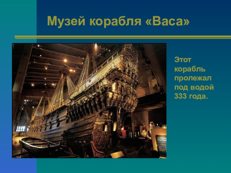 Музей корабля «Васа»Этот корабль пролежал под водой 333 года.