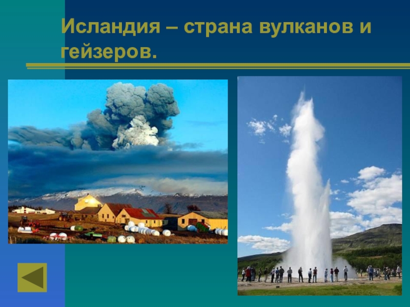 Слайд 23Исландия – страна вулканов и гейзеров.