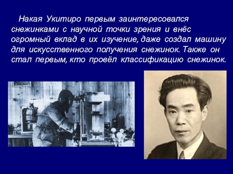 Слайд 17 Накая Укитиро первым заинтересовался снежинками с научной точки зрения
