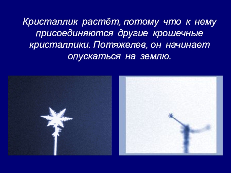 Слайд 23Кристаллик растёт, потому что к нему присоединяются другие крошечные кристаллики. Потяжелев,