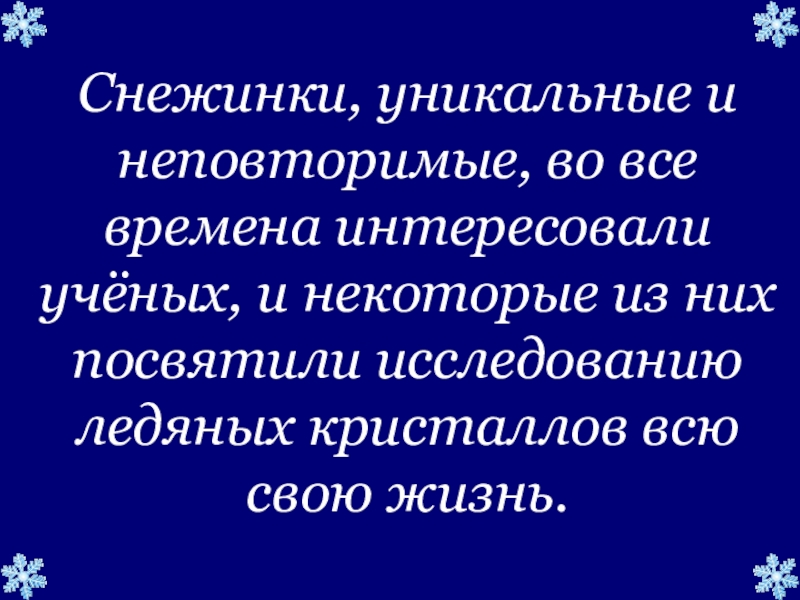 Слайд 3Снежинки, уникальные и неповторимые, во все времена интересовали учёных, и некоторые