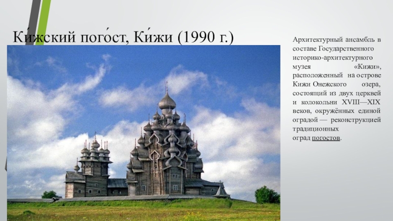 Архитектурный ансамбль в составе Государственного историко-архитектурного музея «Кижи»,