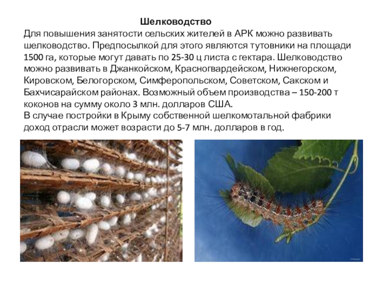 В АРК накоплен многолетний опыт производства диетических яиц на промышленной основе (Крым в 80-е годы уже производил такое количество), а поэтому речь идет о восстановлении производственного потенциала, разрушенного в годы неудавшихся реформ. Построенные ранее птицефабрики можно быстро модернизировать.