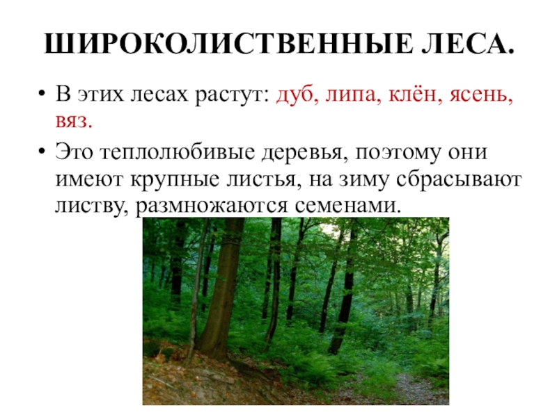 Слайд 9ШИРОКОЛИСТВЕННЫЕ ЛЕСА.