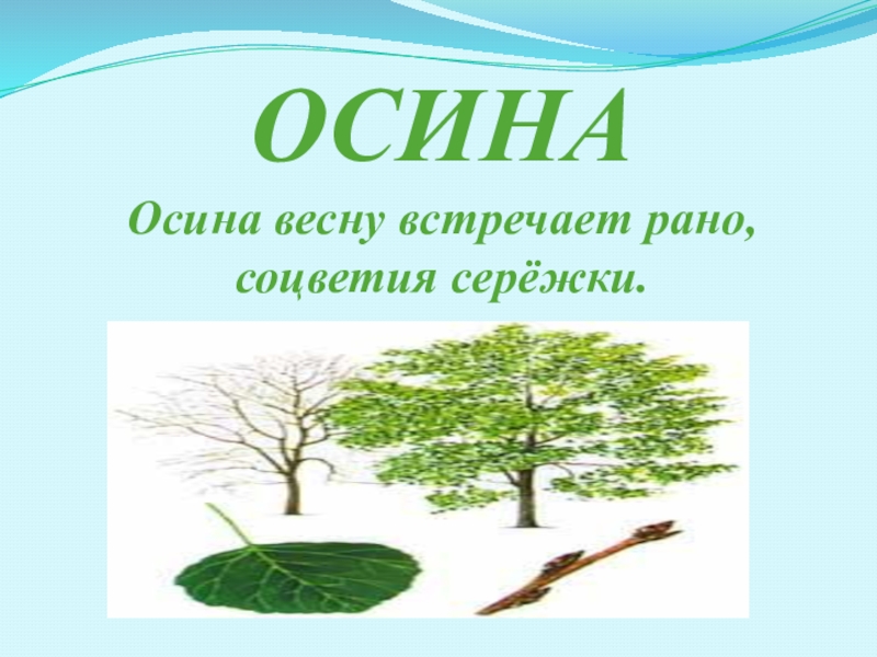 Слайд 8ОСИНА Осина весну встречает рано, соцветия серёжки.