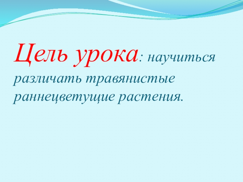 Слайд 5Цель урока: научиться различать травянистые раннецветущие растения.