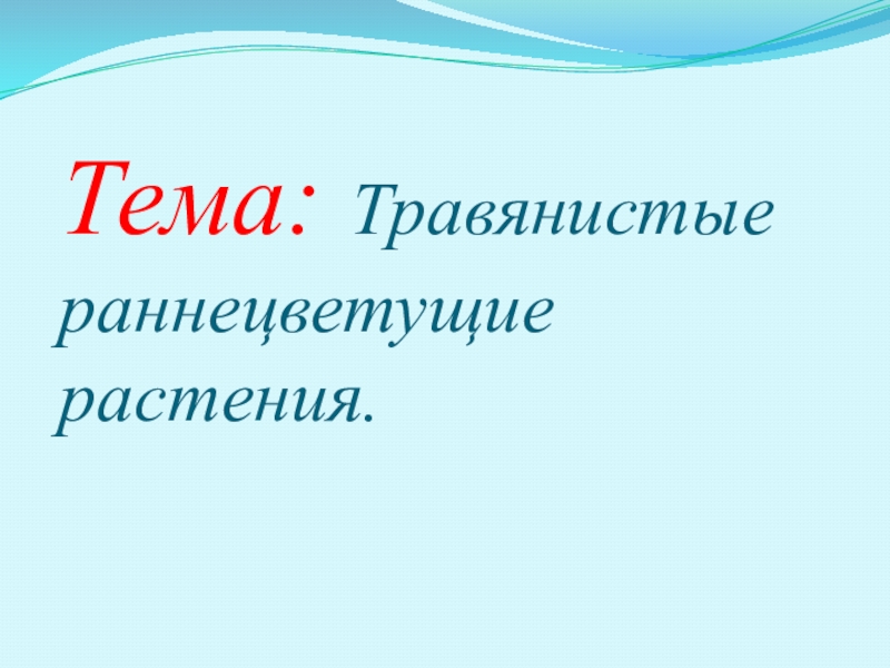 Слайд 4Тема: Травянистые раннецветущие растения.