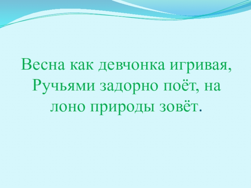 Слайд 2Весна как девчонка игривая, Ручьями задорно поёт, на лоно природы зовёт.