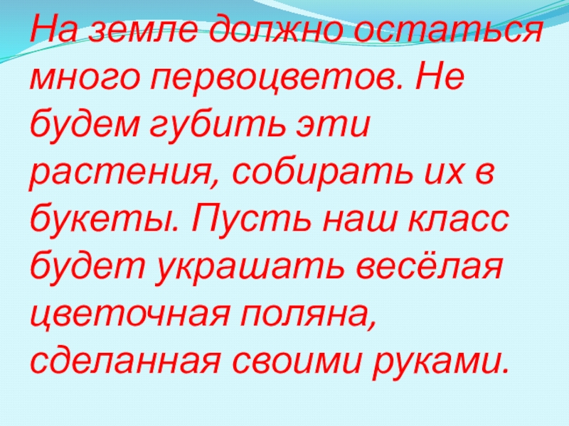 Слайд 10На земле должно остаться много первоцветов. Не будем губить эти растения,