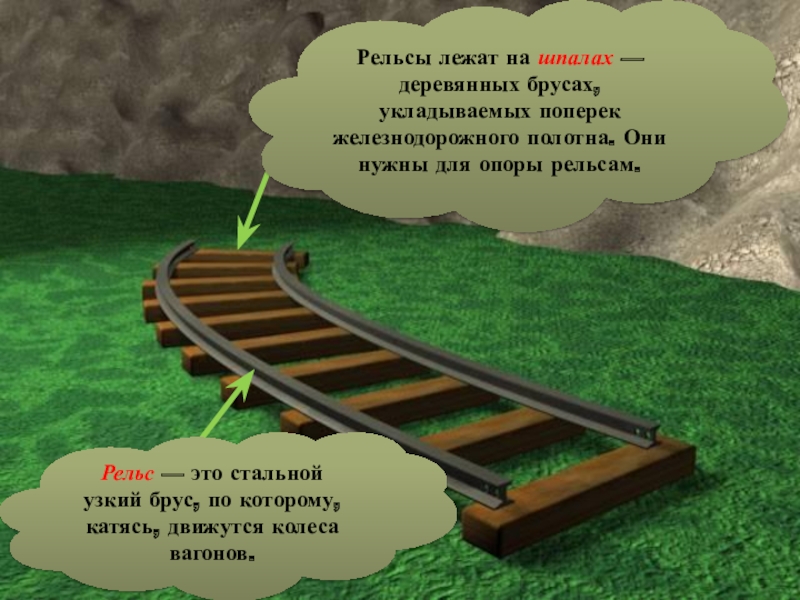 Рельс — это стальной узкий брус, по которому, катясь, движутся колеса вагонов.