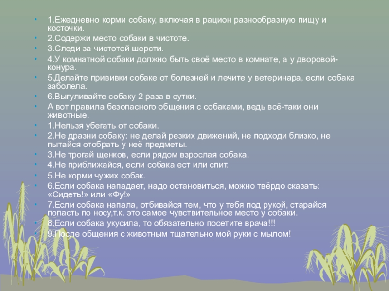 Слайд 141.Ежедневно корми собаку, включая в рацион разнообразную пищу и косточки.