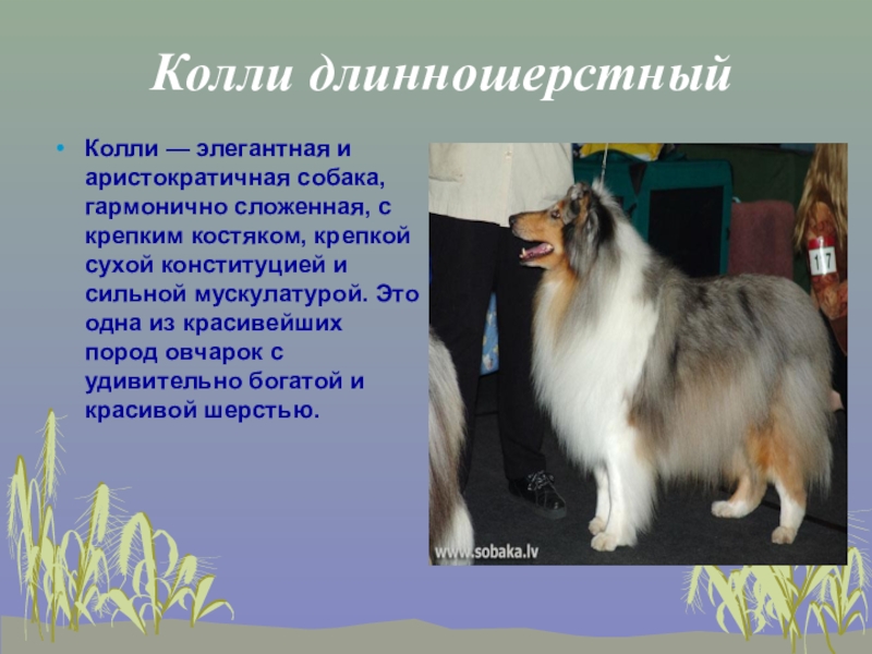 Колли — элегантная и аристократичная собака, гармонично сложенная, с