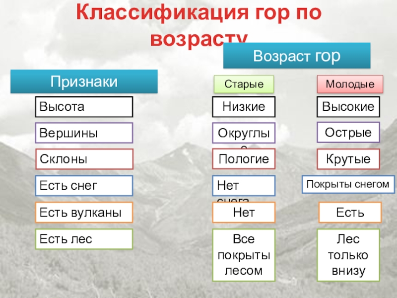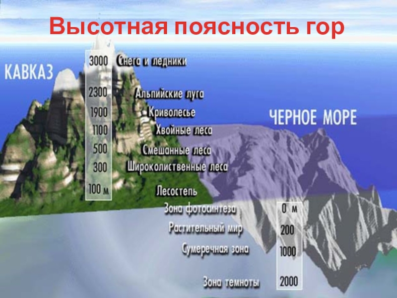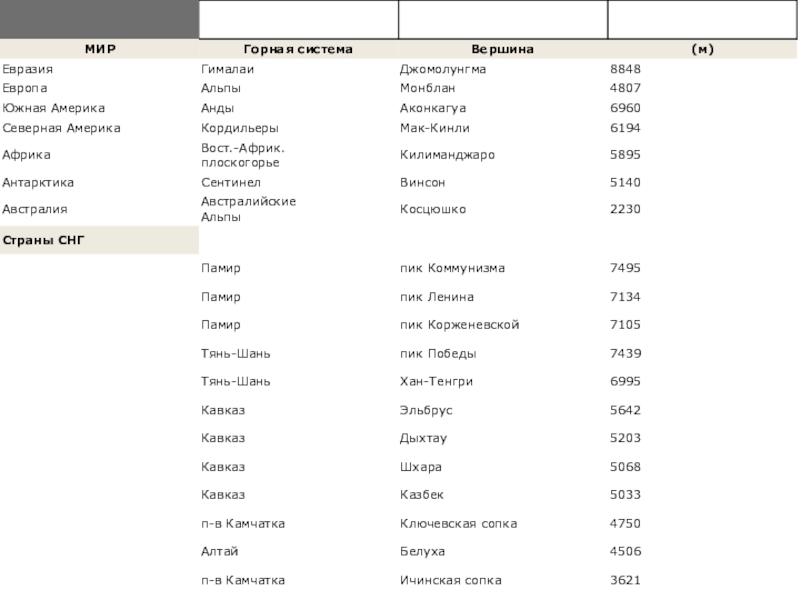 Высокие горы, относительной высотой свыше 2 км, абсолютной — свыше 3 км