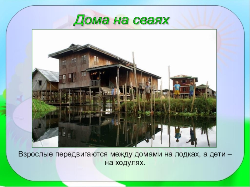 В некоторых местах жить на земле слишком опасно, например, там, где хищные животные бродят по ночам. В других районах люди живут на болотах, где нельзя строить устойчивые дома. В странах Юго-Восточной Азии дома на сваях являются надежной защитой от наводнений.