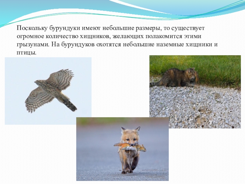 Слайд 10Поскольку бурундуки имеют небольшие размеры, то существует огромное количество хищников, желающих