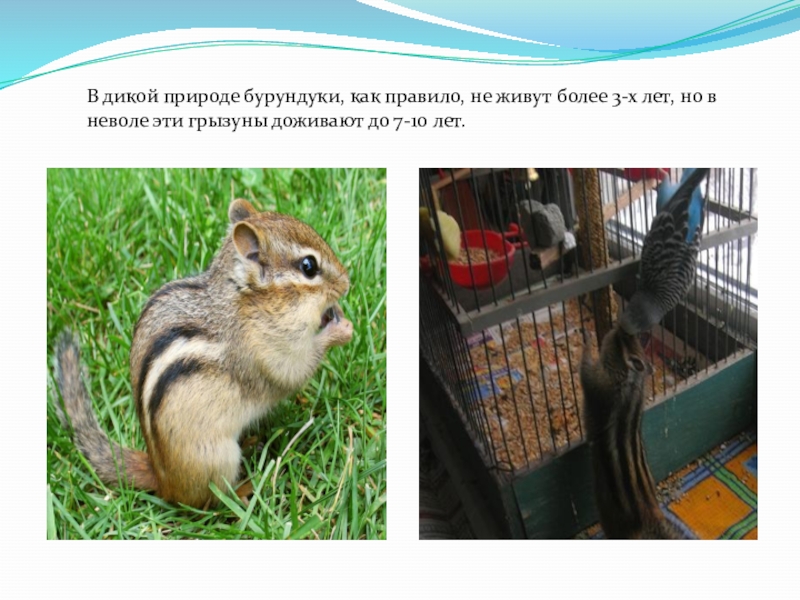 Слайд 12В дикой природе бурундуки, как правило, не живут более 3-х лет,