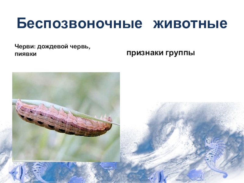 Беспозвоночные  животныеЧерви: дождевой червь, пиявкипризнаки группы