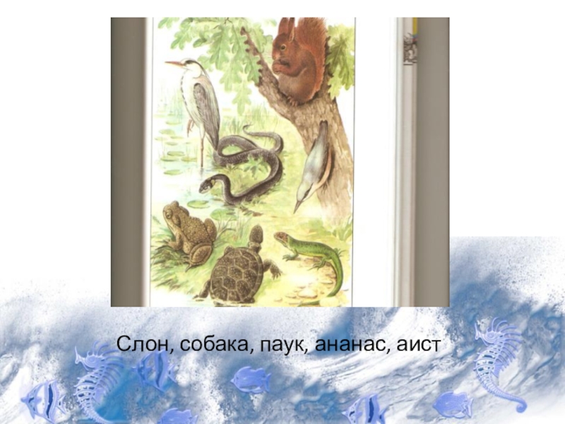 Слайд 2Слон, собака, паук, ананас, аист