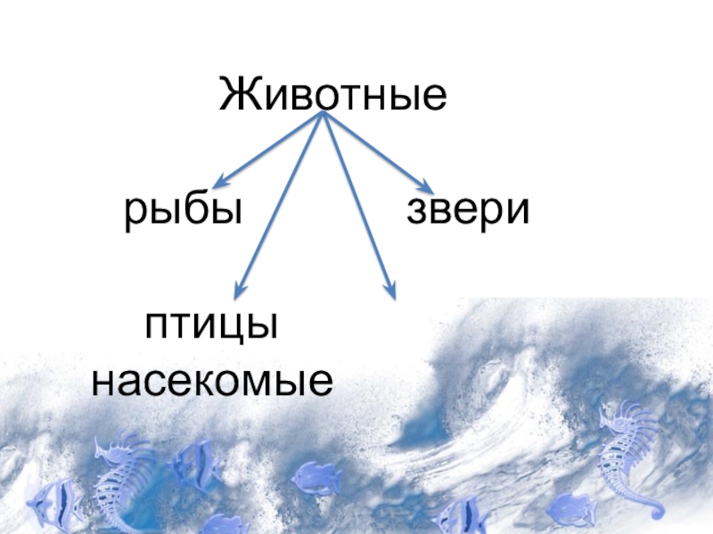 Животные  рыбы        звери