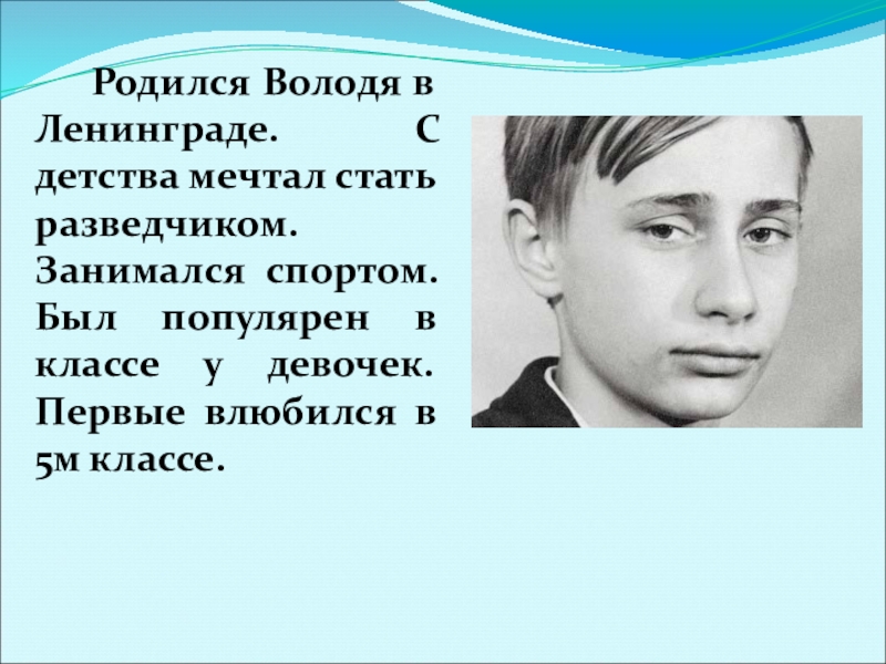 Слайд 3 Родился Володя в Ленинграде. С детства мечтал