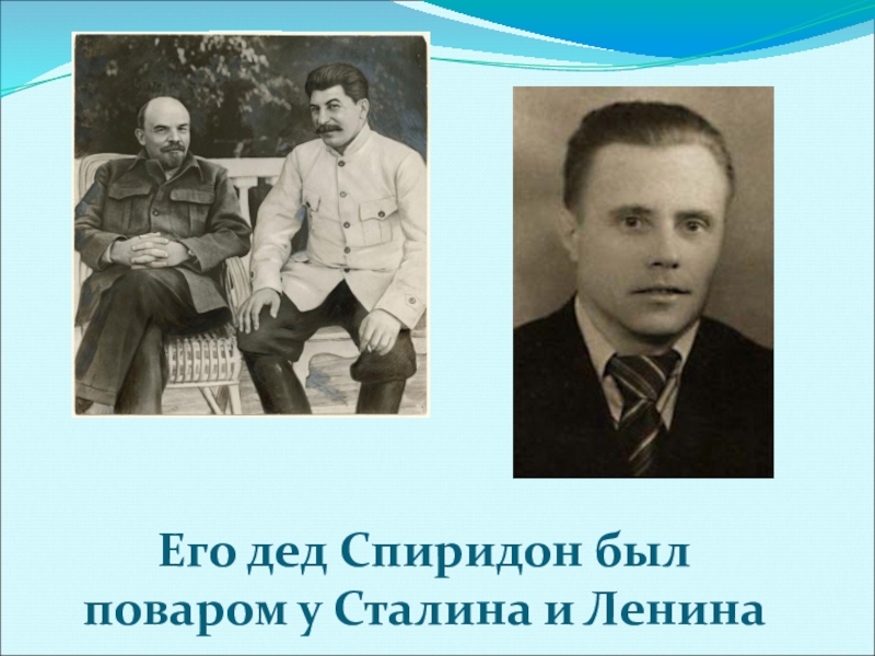 Слайд 4Его дед Спиридон был поваром у Сталина и Ленина