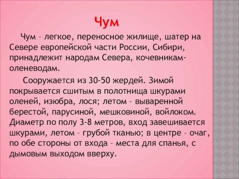 Чум – легкое, переносное жилище, шатер на