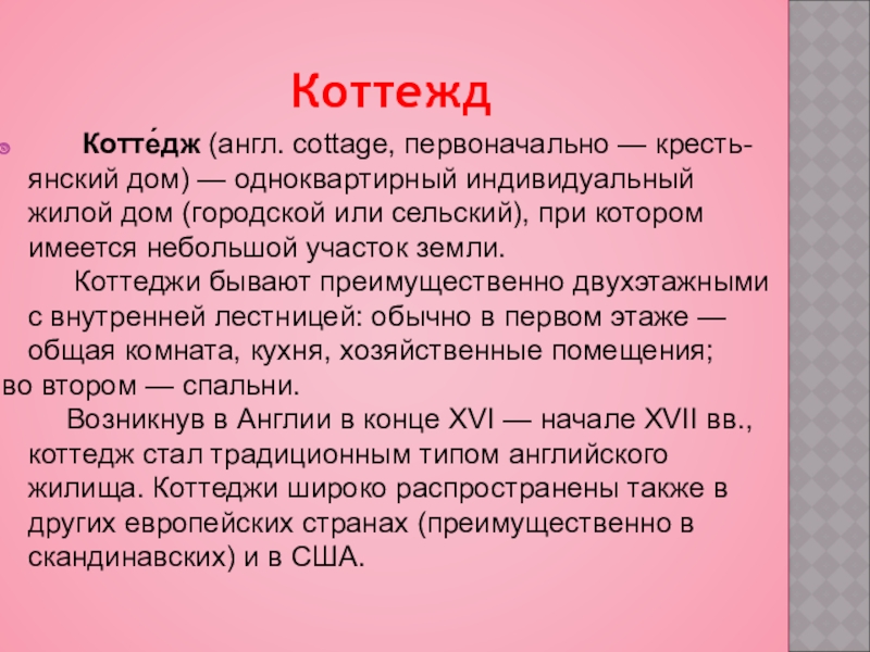 Котте́дж (англ. cottage, первоначально — кресть- янский
