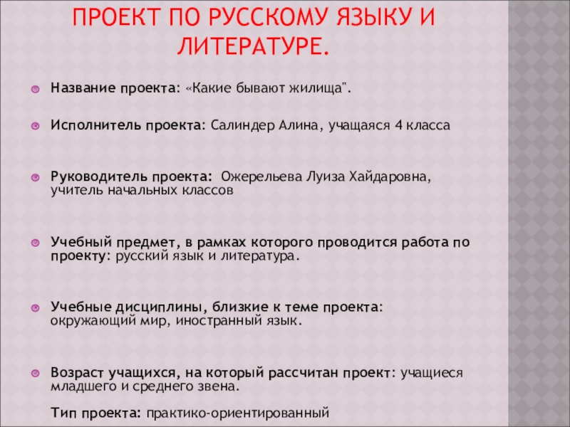 Продукт проекта: слайдовая презентация «Какие бывают жилища».
