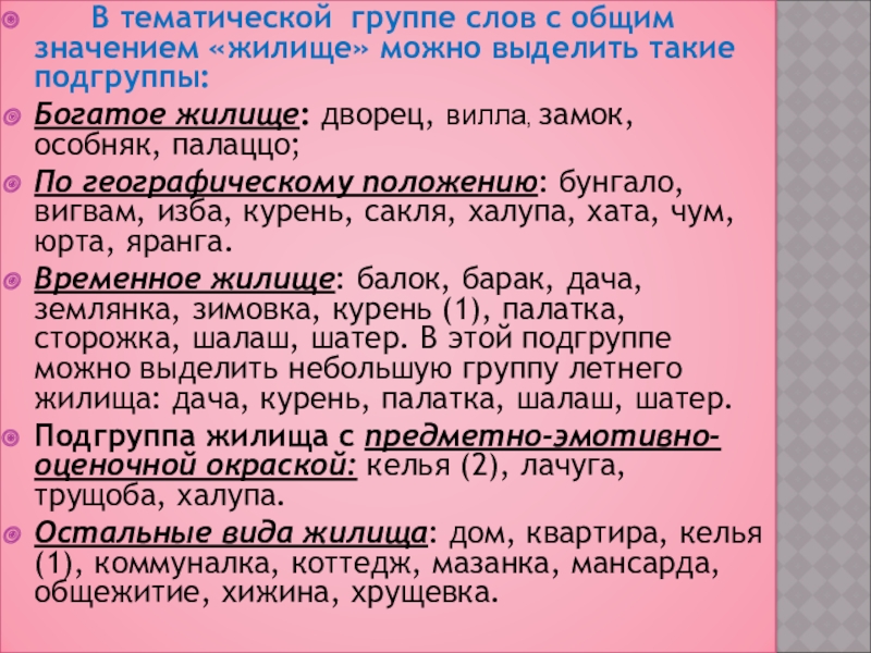 В тематической группе слов с общим значением «жилище»