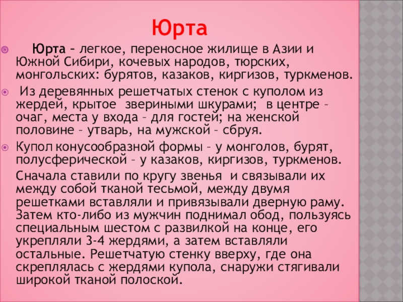 Юрта – легкое, переносное жилище в Азии и Южной