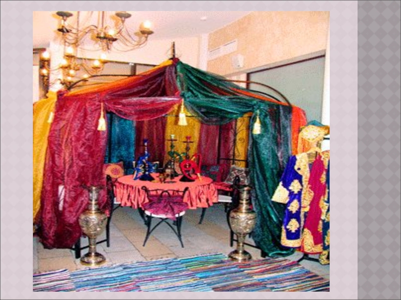 временного проживания, крытая тканью, коврами, кожей, большая, неблагоустроенная.
