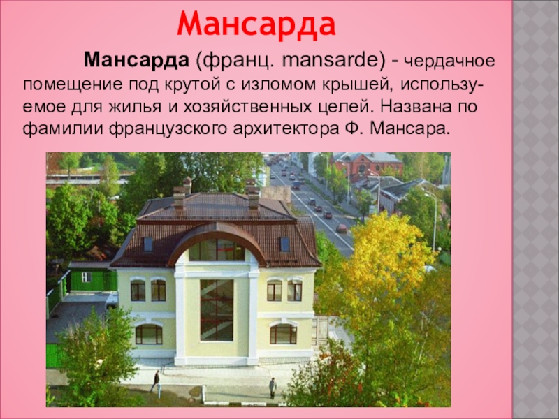 Мансарда (франц. mansarde) - чердачное помещение