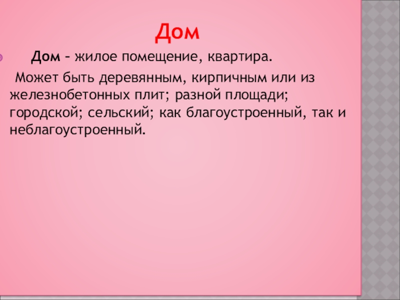 Дом – жилое помещение, квартира.